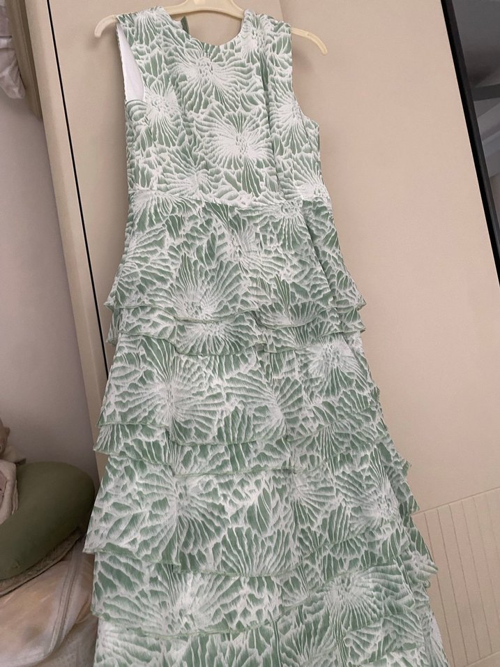 Yeşil Desenli pelerinli elbise, uzun , Robalı