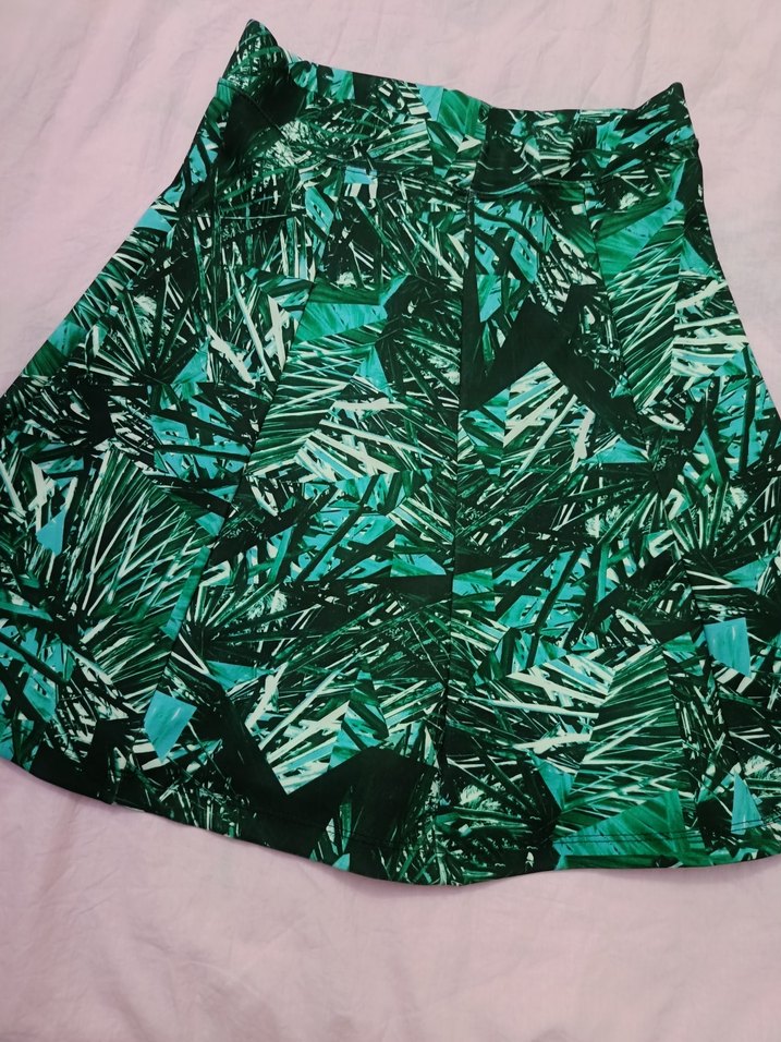 Yeşil Desenli Pilili diz boyunda etek