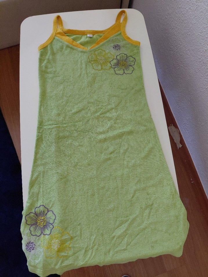 Pastel yeşil renkli, ince askılı ve çiçek desenlidir. pamuklu kumaştan yapılmıştır, hafif ve rahattır.