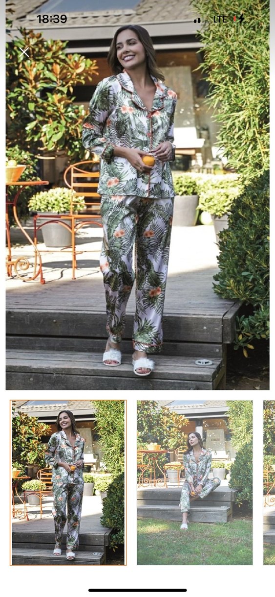 Yeşil Desenli Salaş Kadın Pijama Takımı