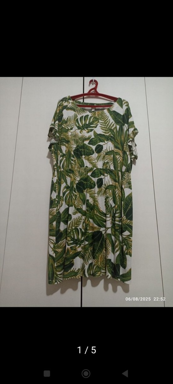 Yeşil desenli, kısa kollu, bol kesim hamile elbisesi, yumuşak sentetik kumaştan üretilmiş, günlük kullanım için uygundur. etiketsiz sıfır ürün