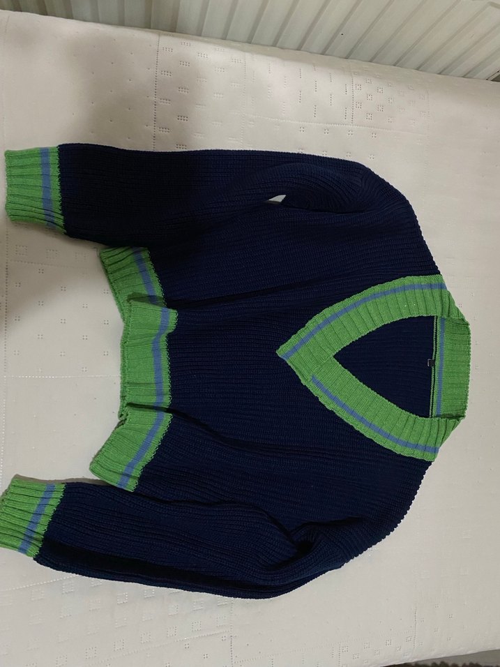Yeşil Detaylı Lacivert Triko Kazak