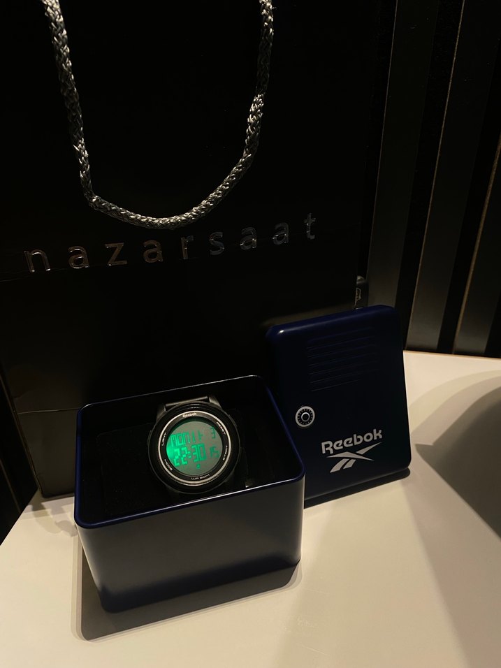 Yeşil dijital ekranlı, çağdaş tasarımlı erkek saati. Reebok kutusunda ve nazarsaat poşeti ile birlikte. ⌚