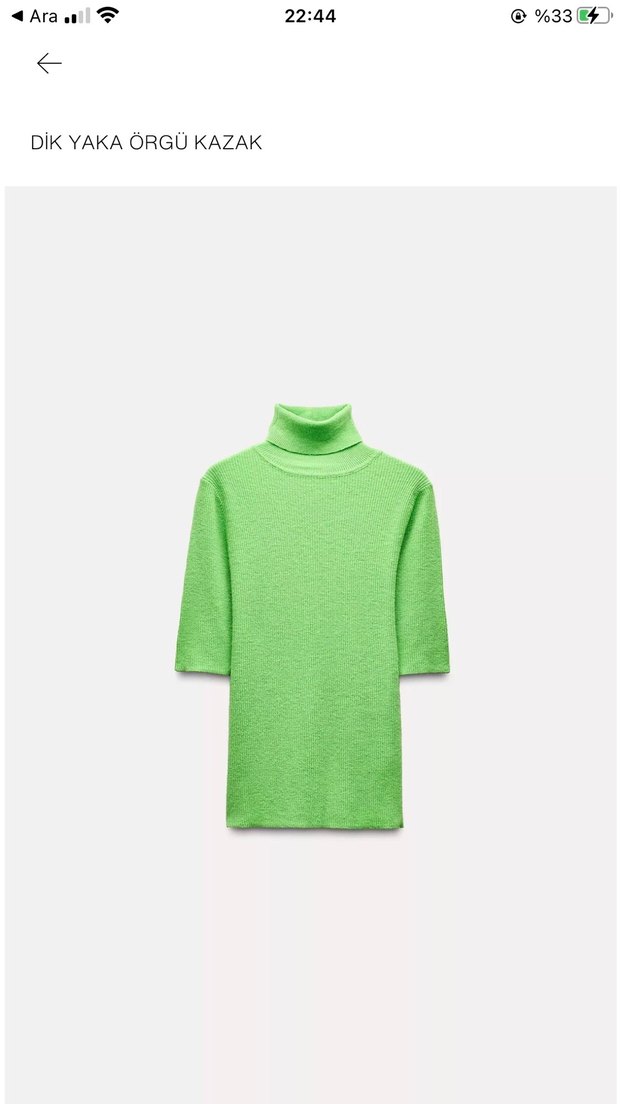 Yeşil renkli, dik yakalı ve kısa kollu örgü kazak. Fit kesimi ve yumuşak pamuk kumaşıyla günlük kullanıma uygun minimal tarzda.