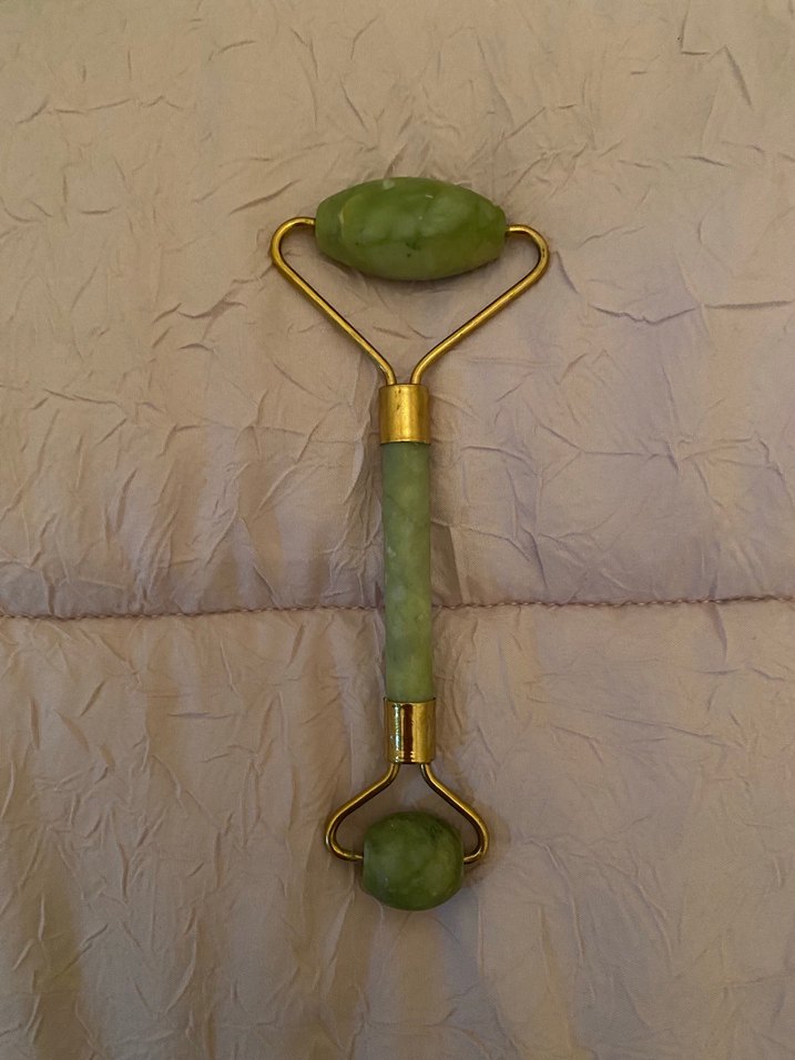 marka temsili Doğal yeşil taştan yapılmış, farklı boyutlarda iki yuvarlak başlıklı yüz masaj aleti. Cildi rahatlatır ve canlandırır.