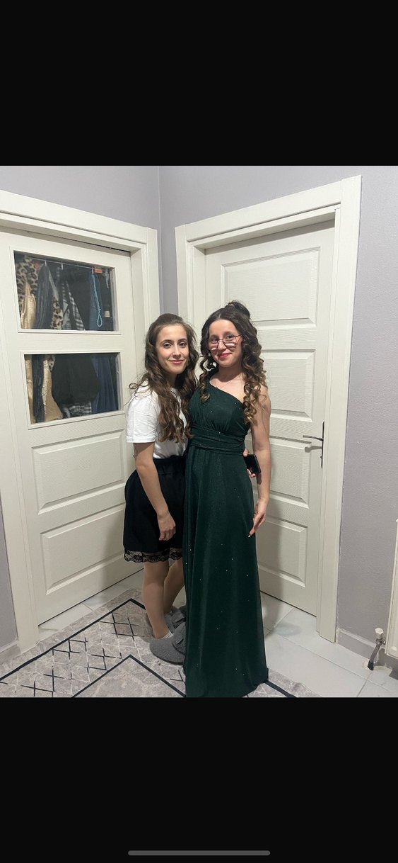 Bu yeşil uzun elbise, askılı ve drapeli detaylarıyla klasik şıklık sunar. Fit kesimi ve straplez yakası ile özel davetlere uygundur.