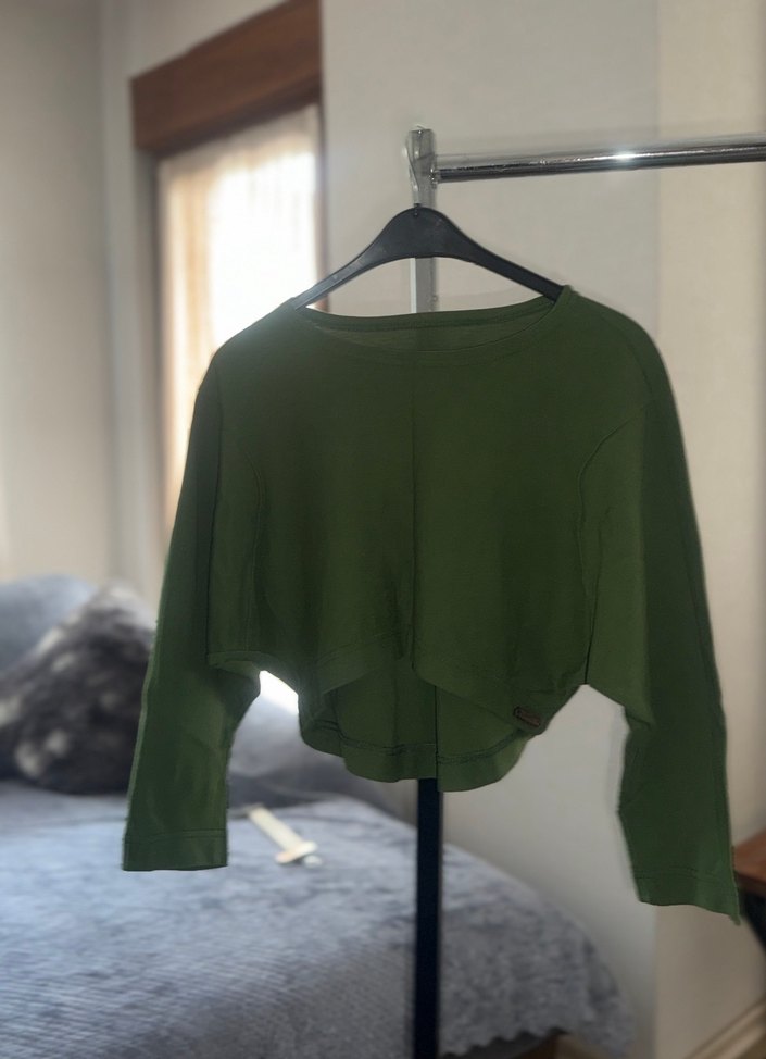 Yeşil, drapeli, uzun kollu, minimalist sokak stili, günlük kullanım için uygun.