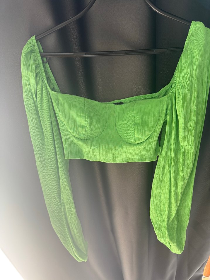 Yeşil Drapeli Mini Bluz