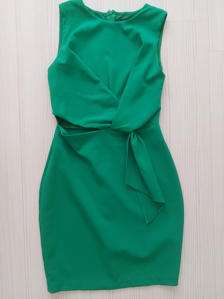 Yeşil renkli, kolsuz, v yaka mini kalem elbise. Drapeli detaylarla ve vücuda oturan kesimiyle romantik akşamlar için uygun. rengi fotograflarda farkli çıkmıştır ama trendyolun kendi rengiyle aynıdır.