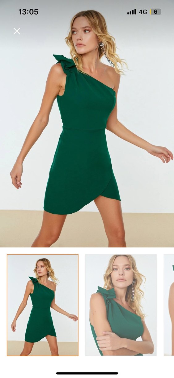 Drapeli, yeşil, straplez ve ince askılı, fit kesim midi elbise. Parti için minimalist ve şık stil sunar.