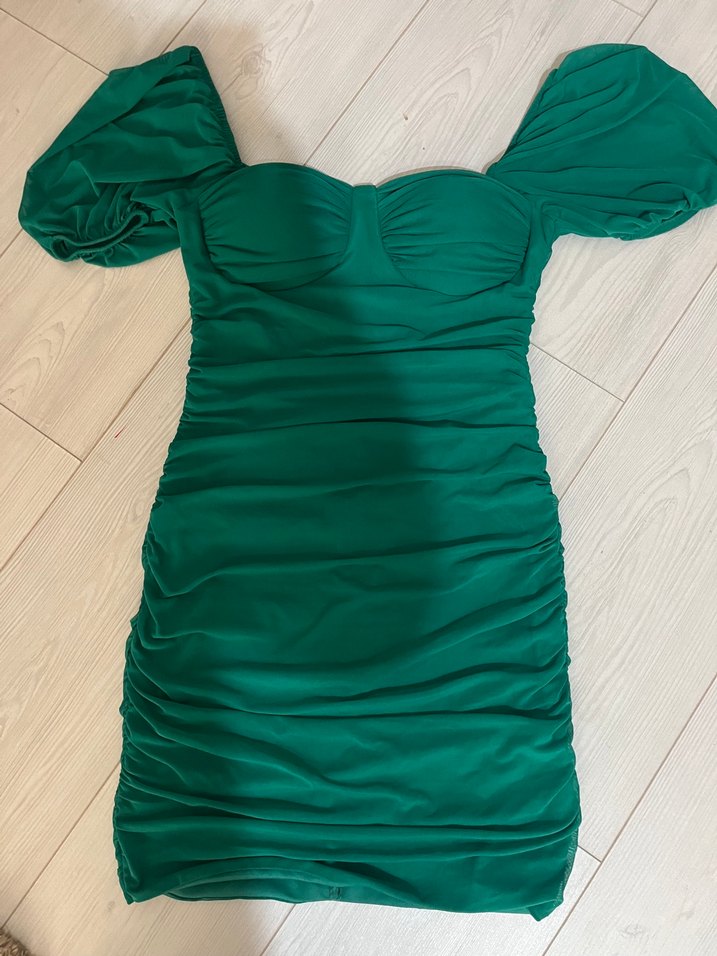 Üstü tül içi astarlı straplez mini elbise 1 kere giyildi deformesi yoktur L beden yazıyor ama S bedene uygundur 55 kiloda giyildi