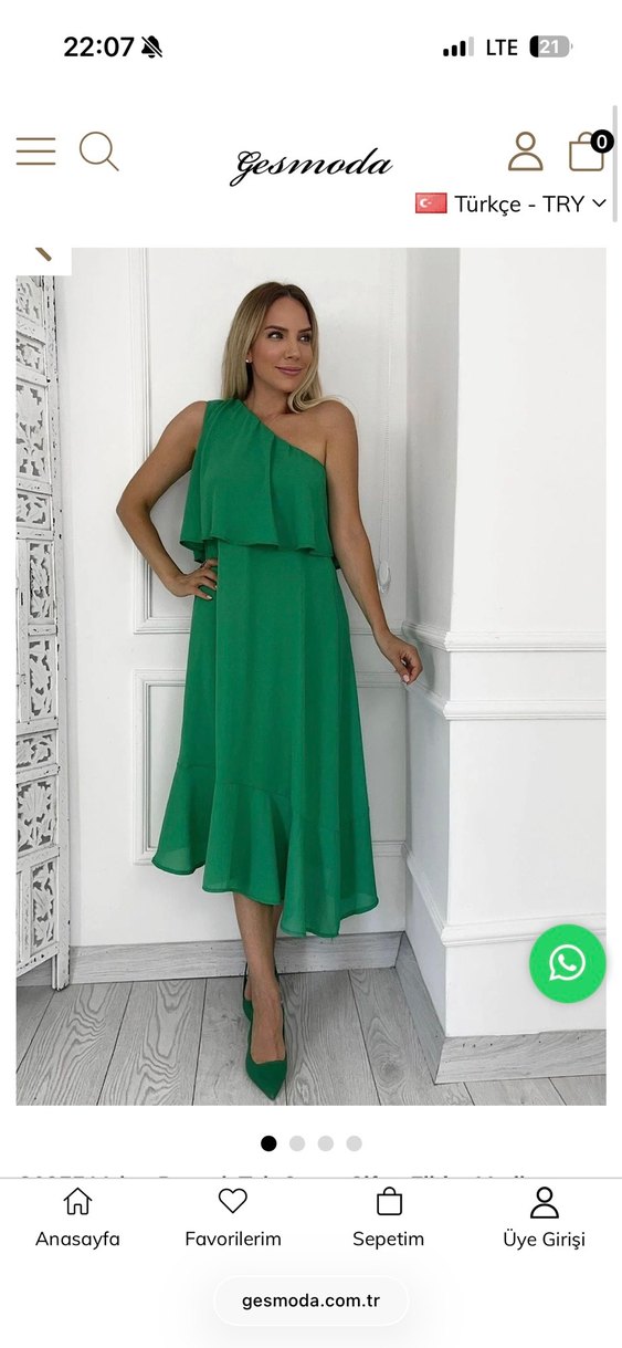 Şifon elbise Standart bedendir Yıkadım ama hiç giymedim Tek omuzlu, drapeli ve bol kesim yeşil uzun elbise, ipeksi kumaştan üretilmiştir. Kolsuz ve romantik akşamlar için uygundur.