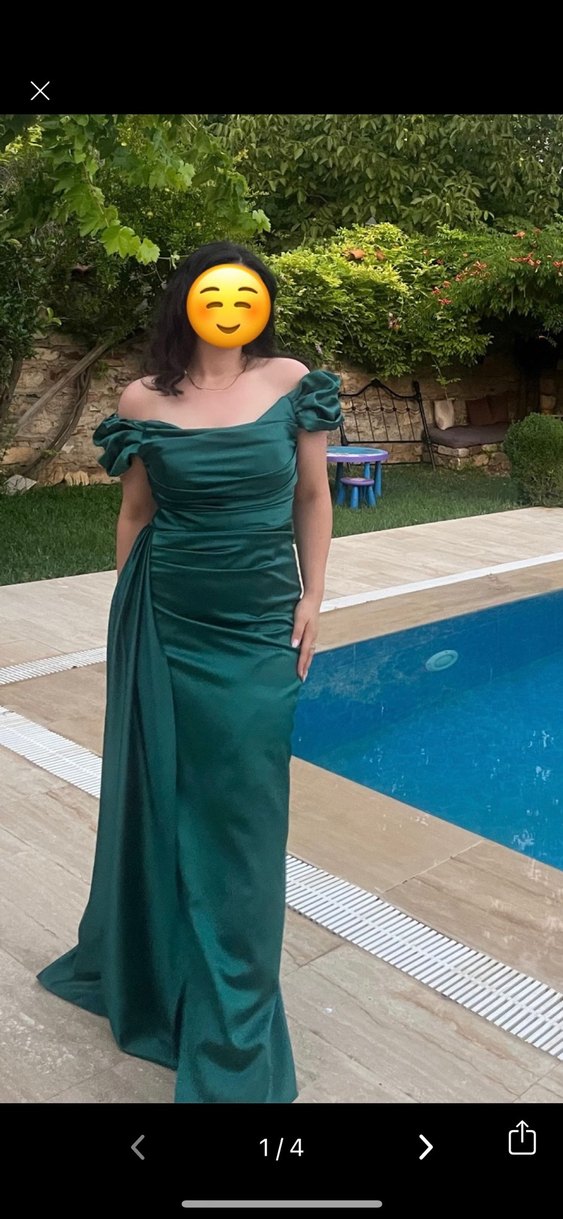 Bu yeşil parlak kumaştan, drapeli ve uzun boy abiye elbise, tekne yakalı ve ince kesimdir. Strappy kollara sahiptir, düğünler için uygundur. Çok şık ve zayıf da gösteren bir abiye, derin bir yırtmacı yok yürürken dize kadar ayak gözüküyor sadece. Ecrin abiye markasına ait, kaliteli bir sateni olduğu için iç çamaşırı izi minimum seviyede. 42 beden ama abiyelerde beden büyük oluyor 40/L beden olan birine çok rahat olacaktır. 162 boy 12 cm topuk kullanıldı. Yıkanmış bir şekilde gönderilecek, sıfırı 5-6k civarı