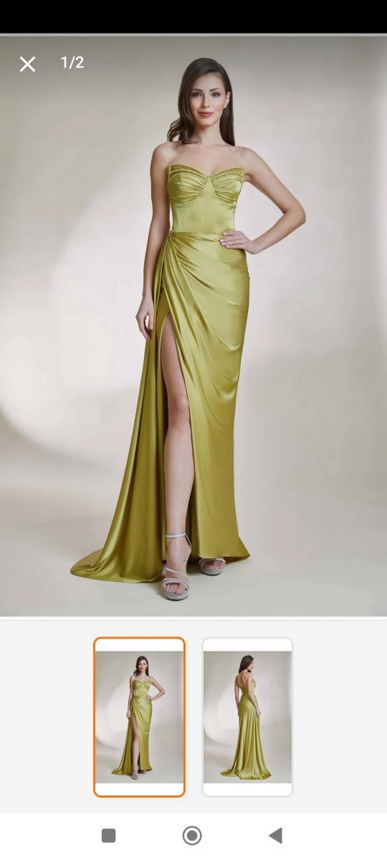 yeşil parlak kumaştan, drapeli ve straplez uzun abiye elbise. s-m beden arkası ipli genişliği ayarlanabilir. bir kez giyildi. kuru temizlemesi yoktur.