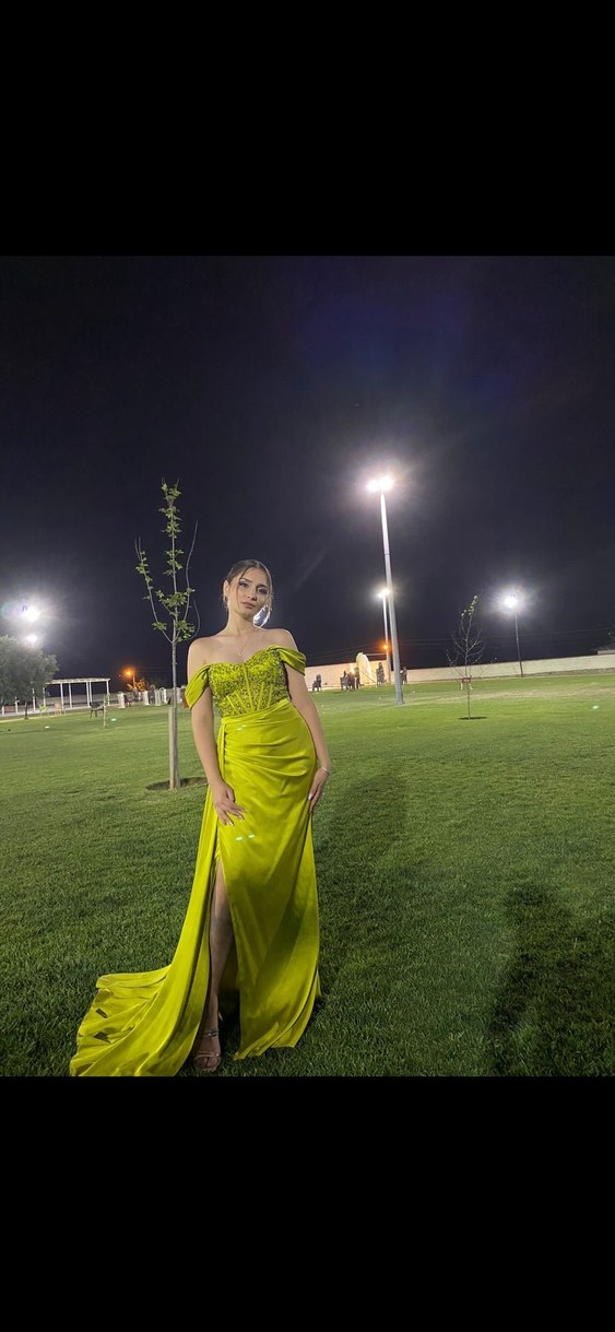 Yeşil Drapeli Uzun Abiye Elbise