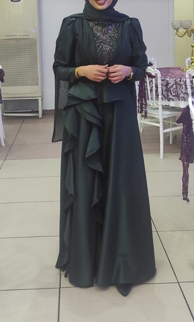 Yeşil Drapeli Uzun Abiye Elbise