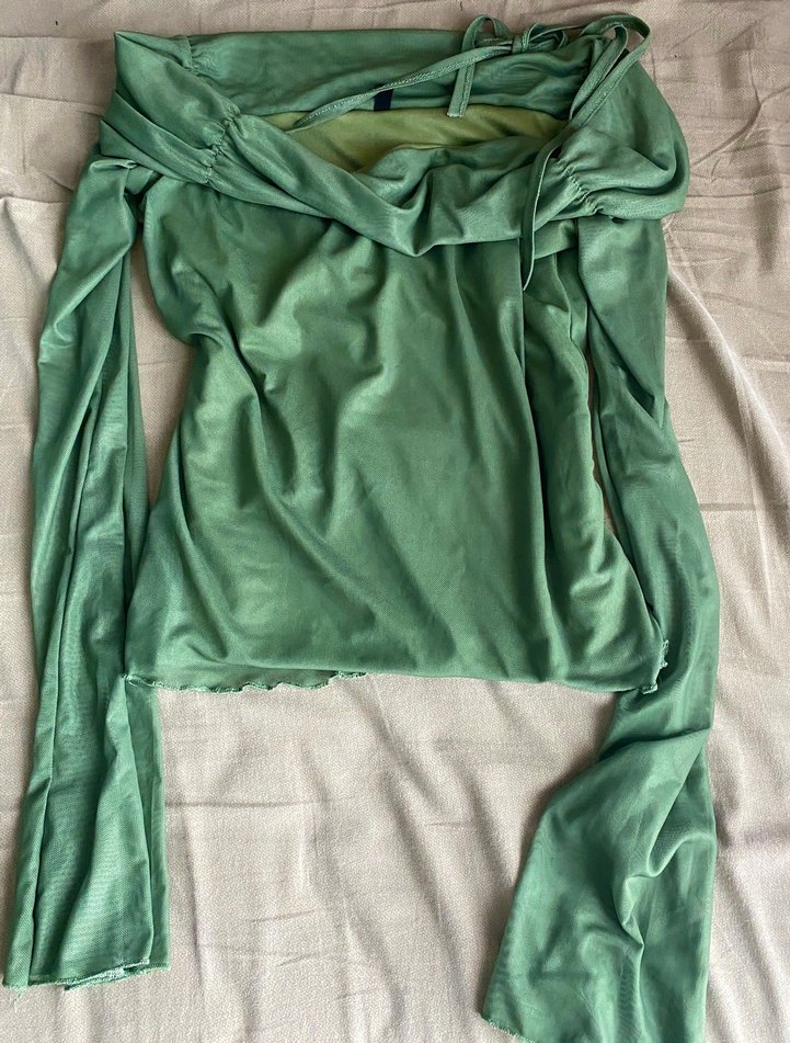 Yeşil Drapeli Uzun Kollu Kadın Bluz