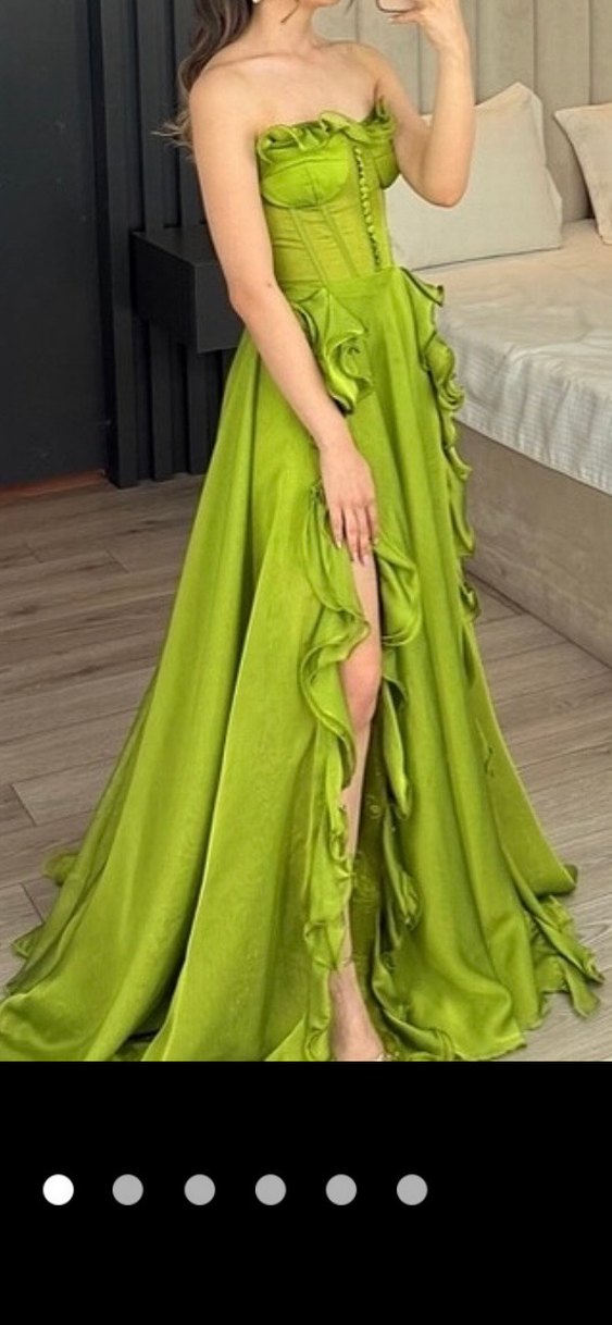 Yeşil Drapeli Uzun Straplez Kadın Elbise