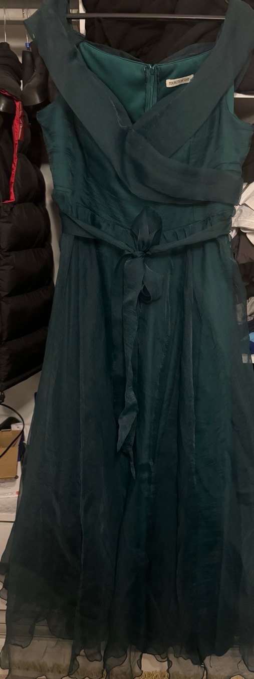 Bu koyu yeşil straplez elbise, drapeli detaylar ve bağlamalı bel ile uçuş uçuş etek ucu ile muhteşem tarzını yansıtıyor. Düğünler için gönül rahatlığıyla kullanabilirsiniz bir kez kuzenimin düğününde giydim kuru temizleme yapıldı, , dar kesim ve kolsuzdur alana hayırlı olsun