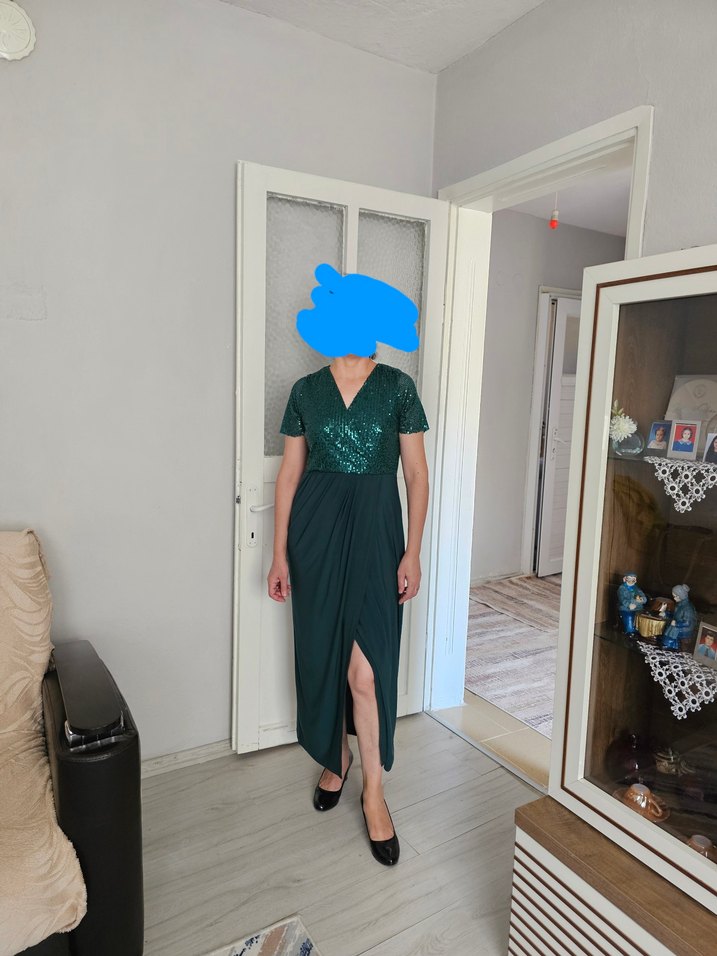 Yeşil Drapeli V Yaka Midi Elbise