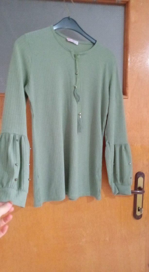 Pastel yeşil renkte, düğmeli uzun kollu bohem tarzı triko. Salaş kesim ve midi boyda, günlük rahat kullanım için uygun. s beden ama 38 bedene de olur neredeyse hiç kullanmadım hiç bir deposu yok etekle ya da başka şekilde de kullanilabilir
