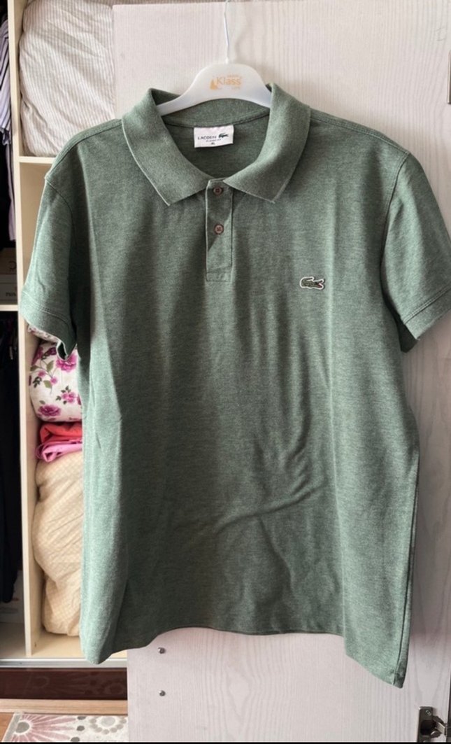 Düğmeli ve polo yaka kısa kollu yeşil erkek tişörtü. Sentetik kumaştan, rahat kesim ve sade pastel renkte, günlük sokak stili için uygundur.