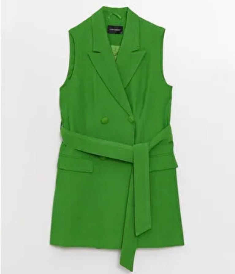 Yeşil Düğmeli Kolsuz Uzun Kadın Blazer