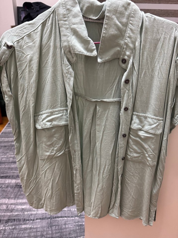 Yeşil Düğmeli Rahat Kadın Gömlek