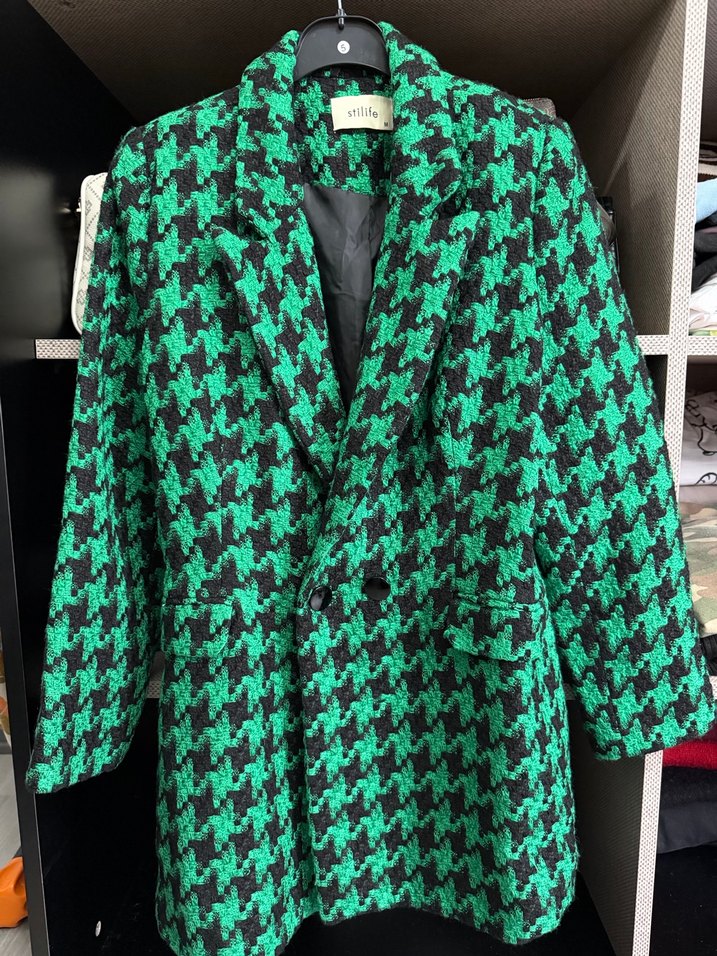 Yeşil, yılan desenli midi blazer, notched lapel yaka ve düğmeli kapama ile. Uzun kollu, regular fit ve sentetik kumaştan üretilmiştir. Street style için uygun.