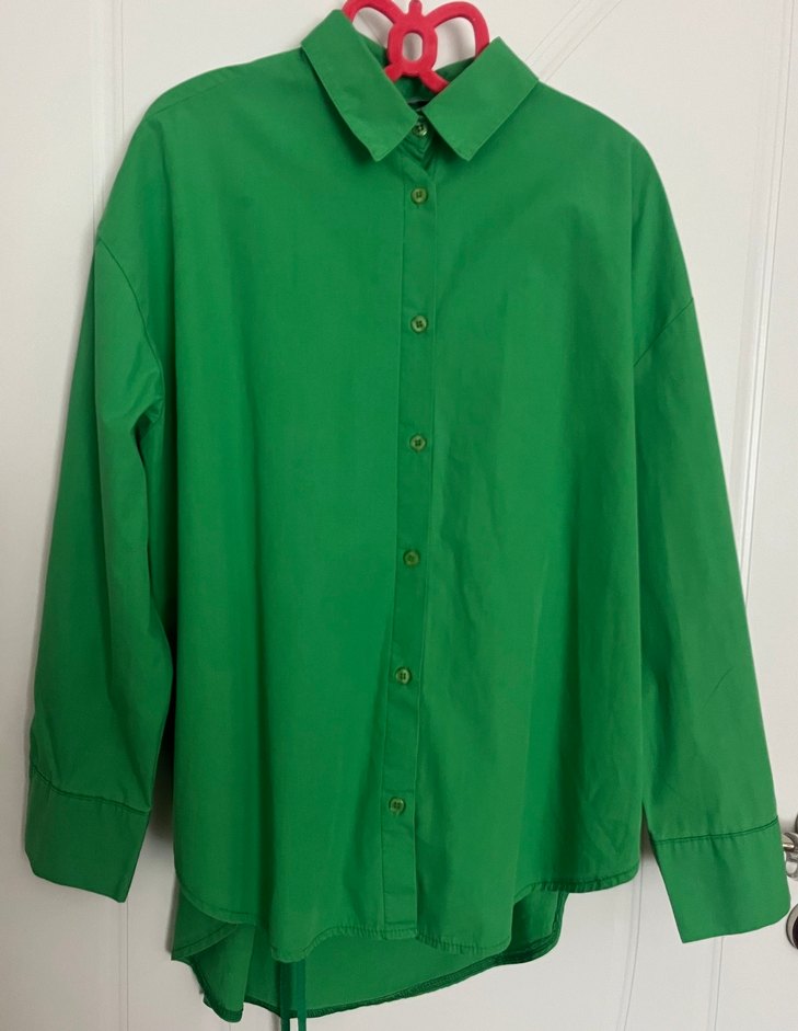 Yeşil Düğmeli Uzun Kollu Kadın Gömlek