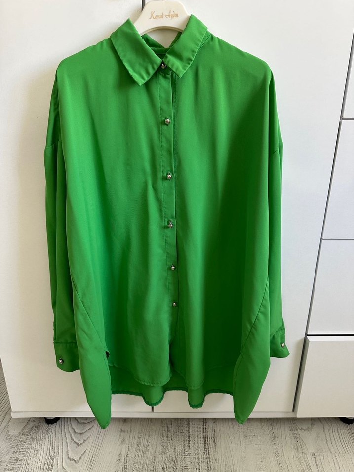 Yeşil Düğmeli Uzun Kollu Salaş Gömlek