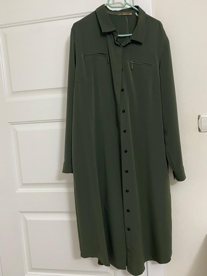 Yeşil, parlak sentetik kumaştan, düğmeli, normal boy, uzun kollu, baskılı ve kesimli. Marka: AVNIHAN.