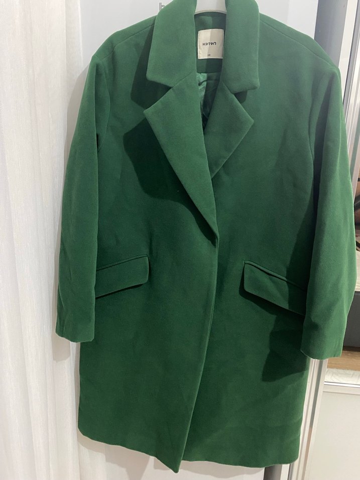 Geniş yakalı, düz kesim ve ön kapaklı cepleri olan yeşil kaban. Yumuşak ve sıcak kumaştan üretilmiştir.