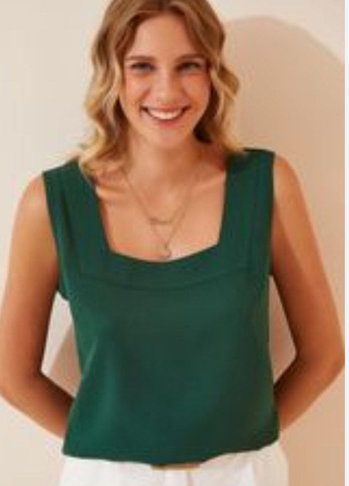 Yeşil Düz Kesim Kolsuz Bluz