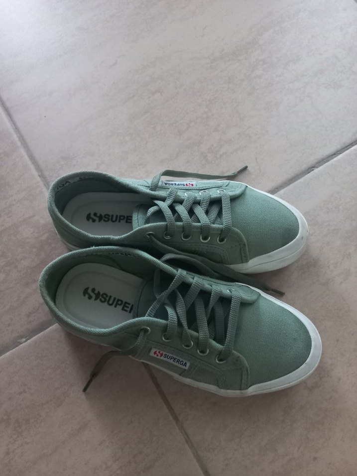 Yeşil renkte, düz tabanlı ve desensiz kadın spor ayakkabısı. Günlük kullanım için rahat ve şık bir seçenek. Üzerinde SISUPE logosu bulunur.