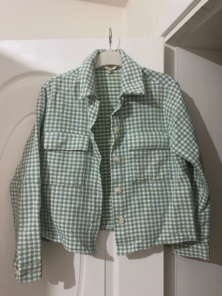 Yeşil Ekose Desenli Uzun Kollu Kadın Gömlek