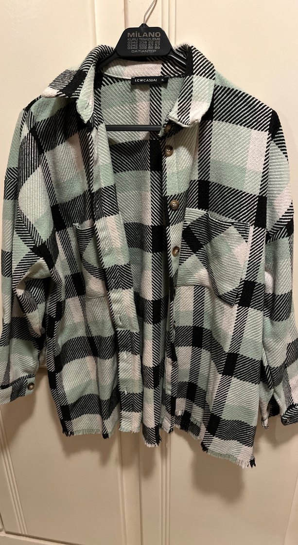 Gevşek kesim, uzun kollu, yeşil ekose desenli, düğmeli kadın gömleğidir. Yumuşak dokulu kumaştan üretilmiştir, günlük kullanıma uygundur.
