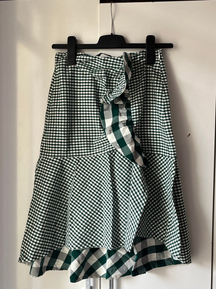 Yeşil Ekose Pilili Midi Etek