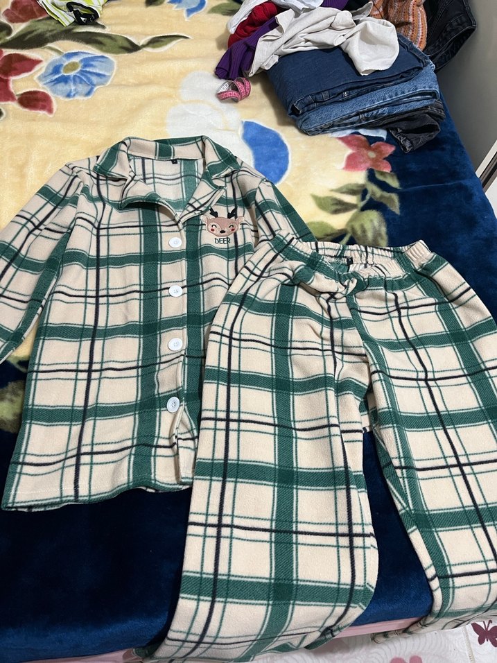 Yeşil ekoseli polar kalın pijama takımı. 1-2 kere giyildi. Bir kusuru yok