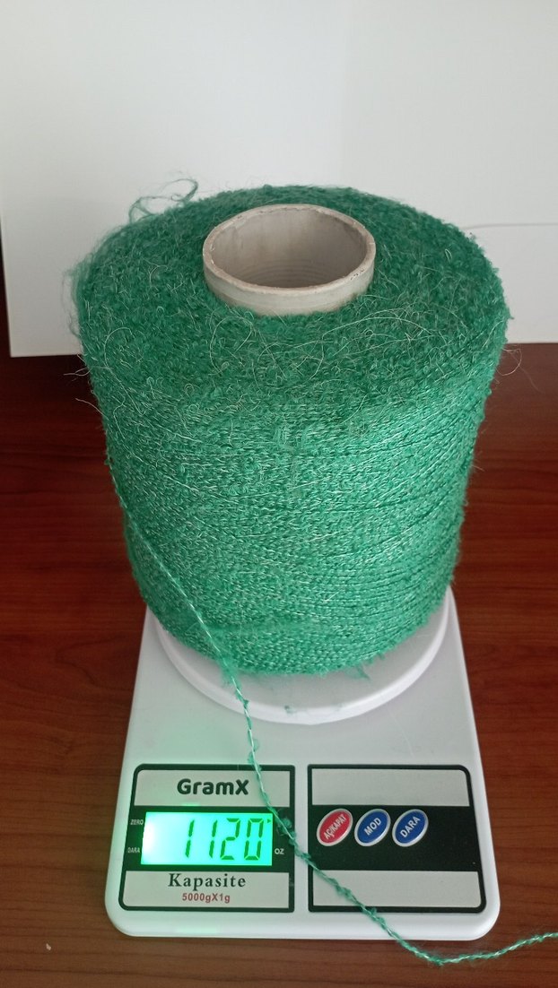 Çeşitli el işi projeleri için uygun, 1120 gram ağırlığında yeşil el işi moher iplik.
