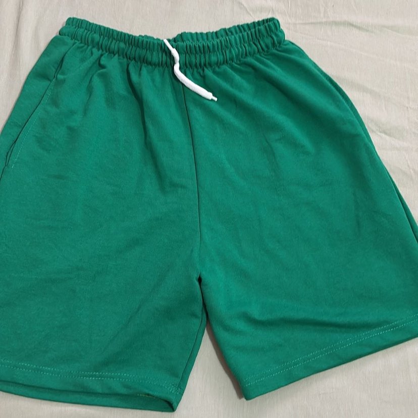 Yeşil renkte, elastik bele sahip, bol kesim ve yumuşak, sıcak tutan kumaştan üretilmiş erkek şort.