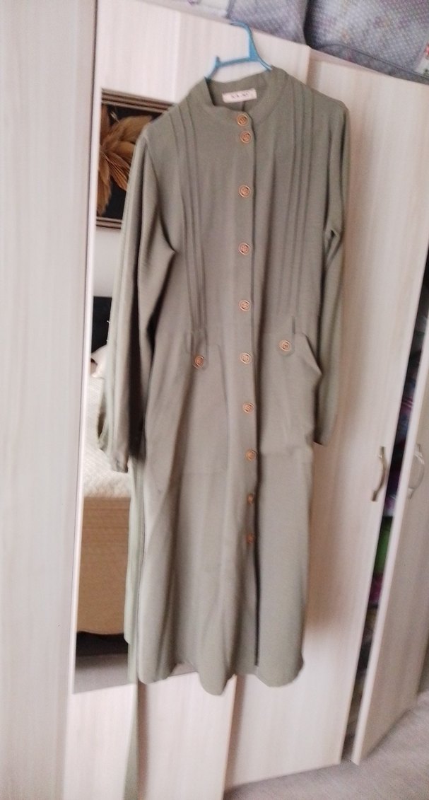 cepli uzun düğme detaylı yeşil elbise