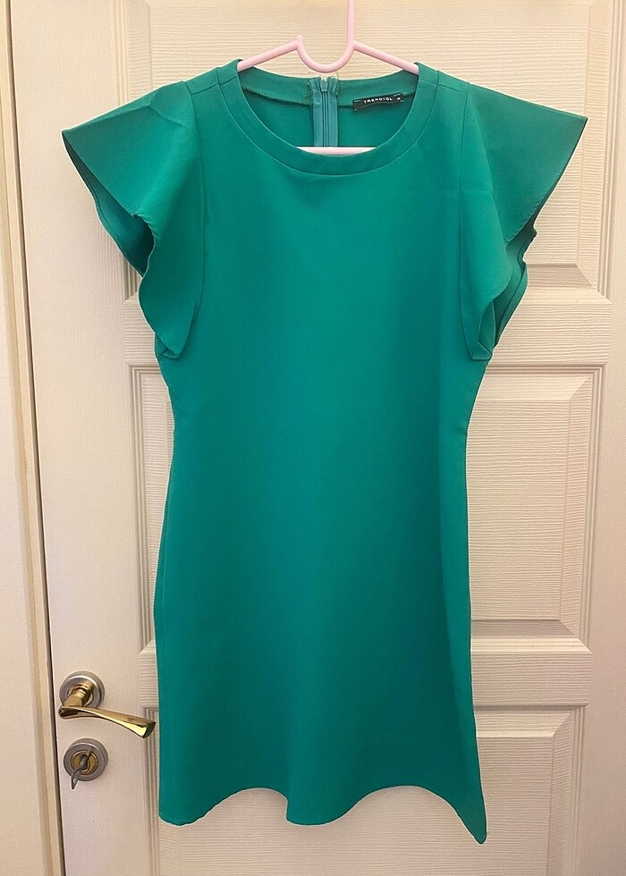 Kolları fırfırlı, rengi çimen yeşili fakat fotoğrafta daha koyu duruyor. 36 Beden