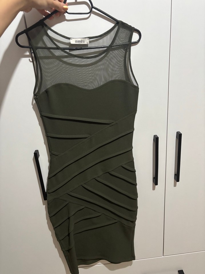 Bu haki, vücuda oturan midi elbise, transparan üst kısmıyla piliseli detaylara sahiptir, romantik akşamlar için uygundur. Bikaç kez giymiştim. Bi kusuru yok.