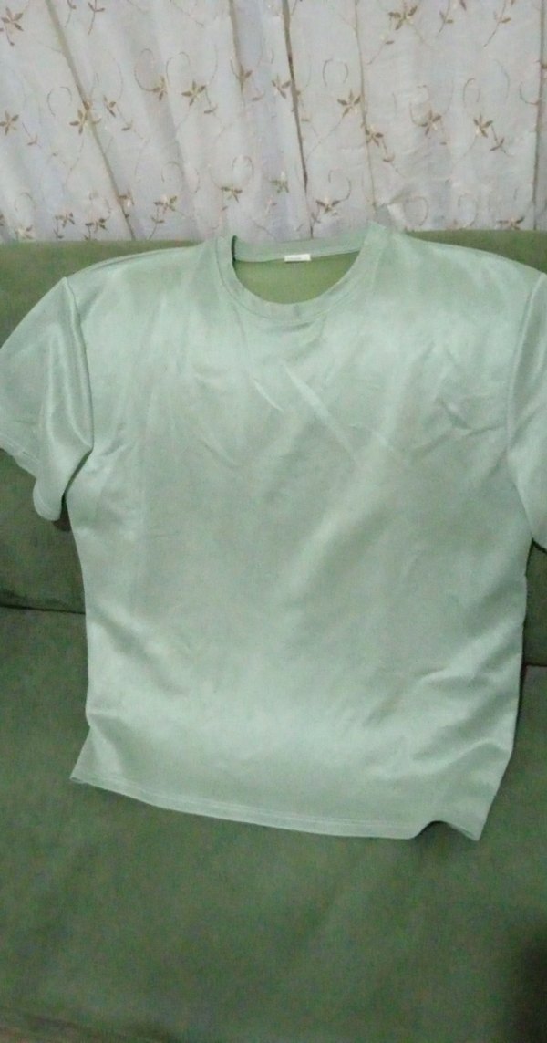 Yeşil renkli, yuvarlak yakalı ve kısa kollu erkek tişörtü. Yumuşak sentetik kumaştan, bol kesim ve normal boyda. Minimalist, normcore tarzda, günlük kullanıma uygun.