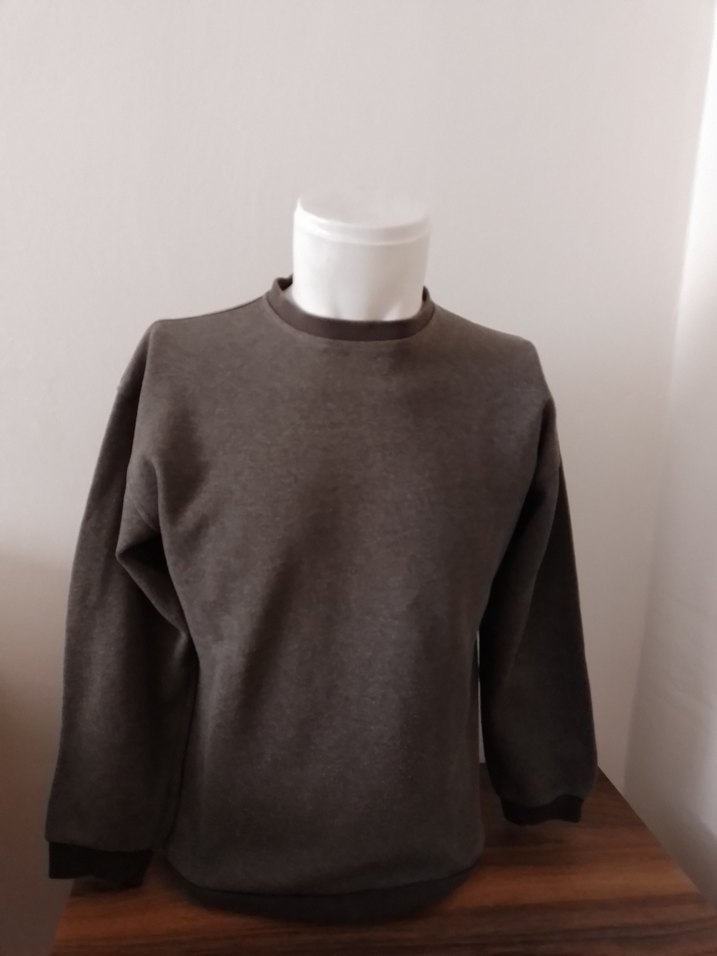 Gri renkte, bisiklet yaka ve uzun kollu erkek sweatshirt. Rahat kesimli ve düz desensiz, günlük sokak stili için uygundur. ✨