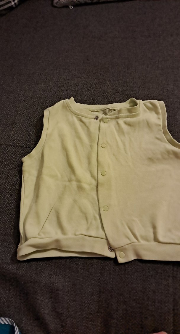 yesil renkli, kolsuz, çıtçıtlı bol kesim erkek çocuk yeleği, yumuşak ve sıcak kumaştan üretilmiştir. Yuvarlak yakalı ve sade tarzda bir üründür.