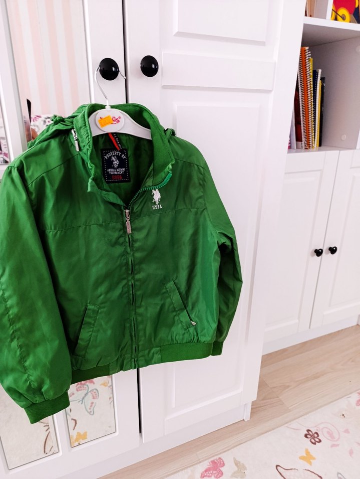 Yeşil renkli, parlak görünümlü erkek çocuk ceketi. Notlu yaka, fermuarlı ve bol kesimdir. Yumuşak ve sıcak kumaştan üretilmiştir.