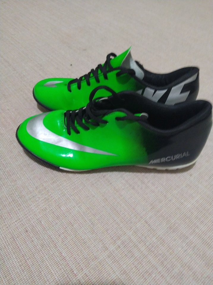 Çağdaş tasarımlı yeşil erkek futbol ayakkabısı, velcro detaylı ve kauçuk tabanlıdır. Spor ve athleisure tarzına uygundur. ⚽