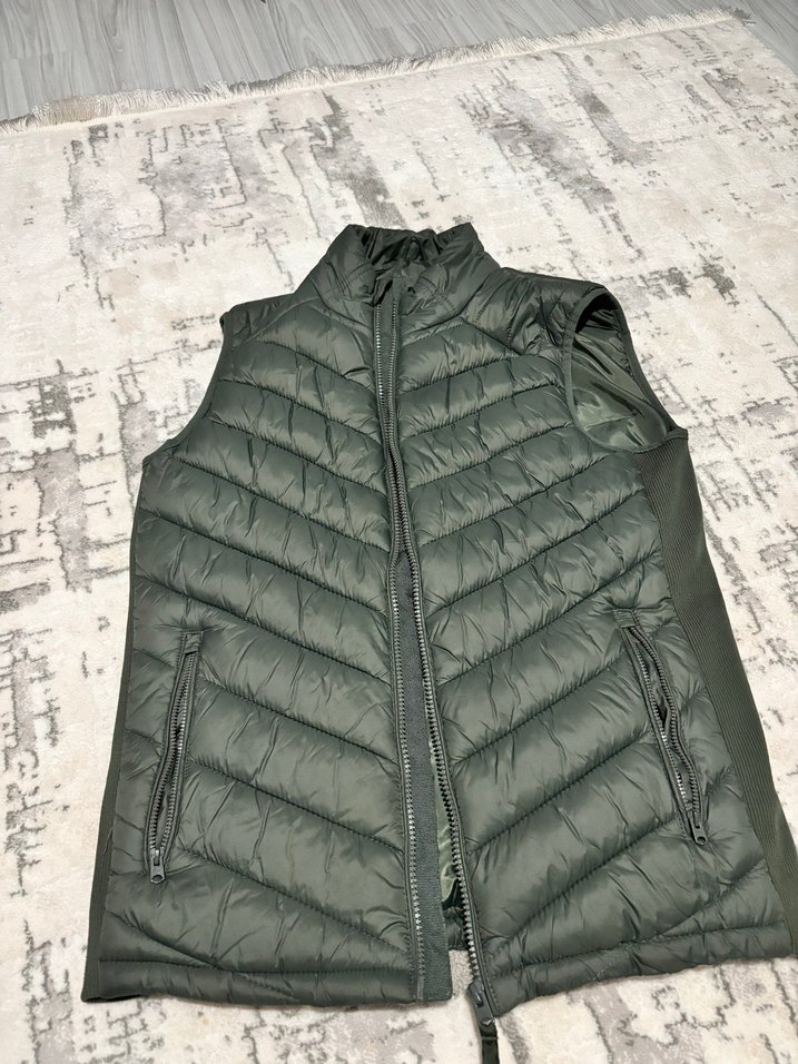 Yeşil Erkek Kapüşonsuz Fermuarlı Şişme Yelek